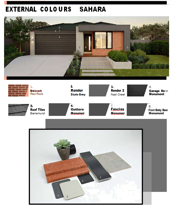 The Sahara palette is bold, sophisticated, and timeless – bringing together warm red brickwork with deep, modern tones. Designed to stand out while remaining elegant, this exterior style delivers both strength and charm, perfect for homeowners who want a commanding street presence.